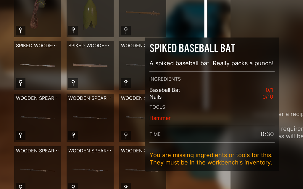 手持ちのバットと釘を組み合わせて釘バットを作成。