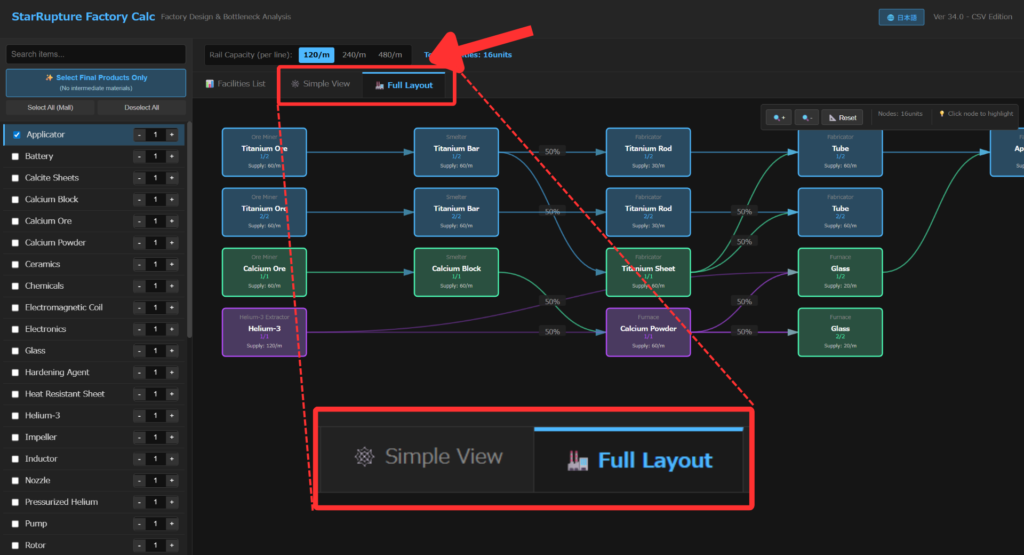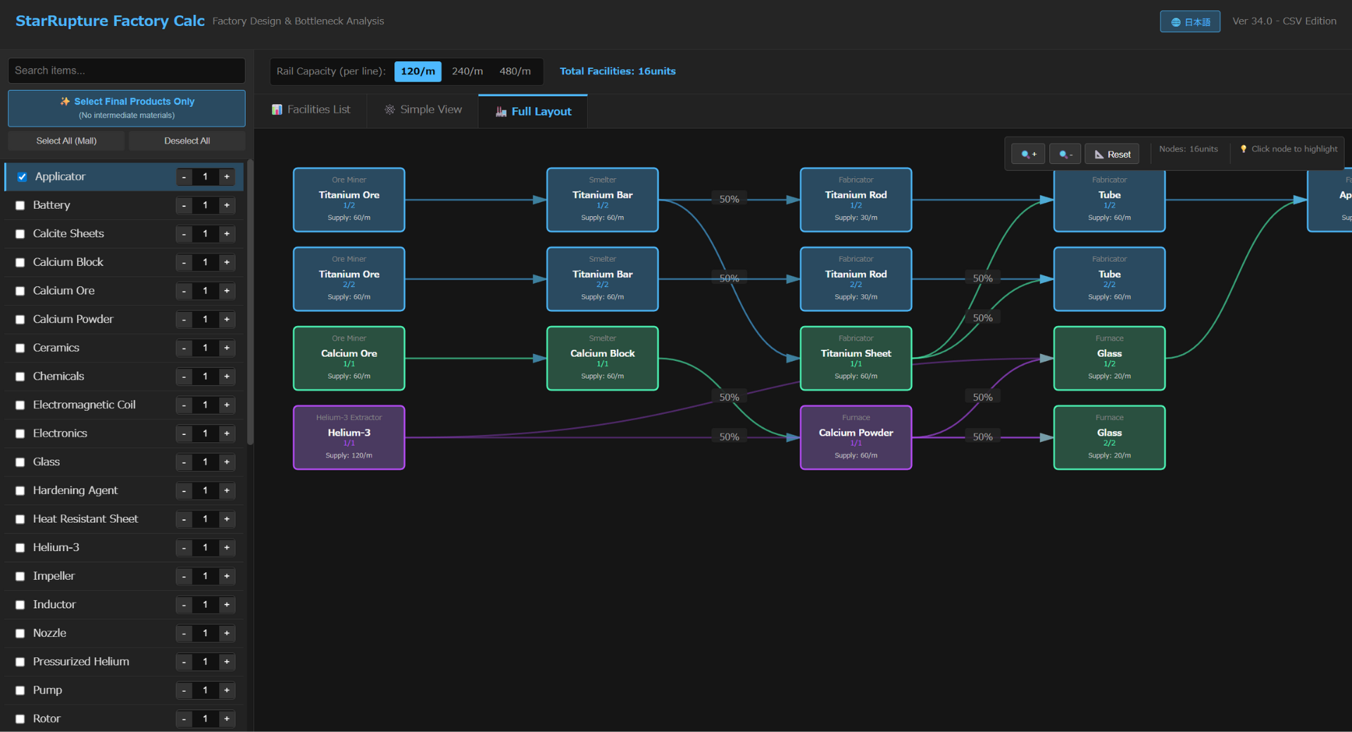 The StarRupture Production Planner is an essential tool for efficient factory design. It automatically calculates the exact number of facilities required for your target output and visualizes the entire production flow.