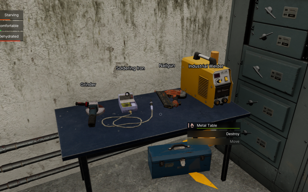In the basement power supply room, the Industrial Welder, Nailgun, and Powered Drill are placed as static spawns.