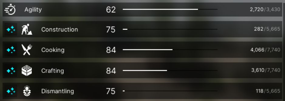 特に建築やクラフトでレベリングをするスキルにおいては、資源が潤沢にあるのであれば、当記事おすすめのものよりも高度な建築・クラフトをすることで効果を高めることができるので、自身の状況に合わせて選択してほしい。
