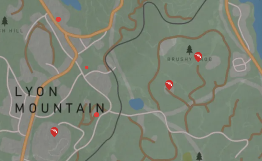 - ● 重要度の低いスポット(2段階の赤い点): 近場で武器を入手したい場合におすすめのスポット。